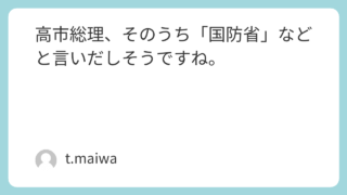 高市総理、そのうち「国防省」などと言いだしそうですね。