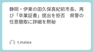 静岡・伊東の田久保真紀前市長、再び「卒業証書」提出を拒否 県警の任意聴取に詳細を黙秘