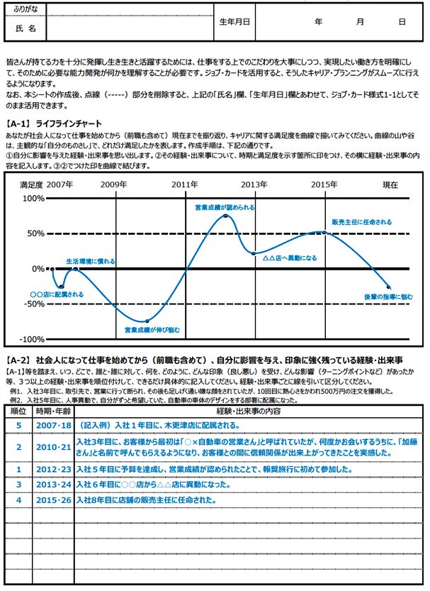 厚生労働省の下記のジョブ・カードの作成案内のページが役立ちます。➡️キャリア・プラン作成補助シート(在職者用) | マイジョブ・カード