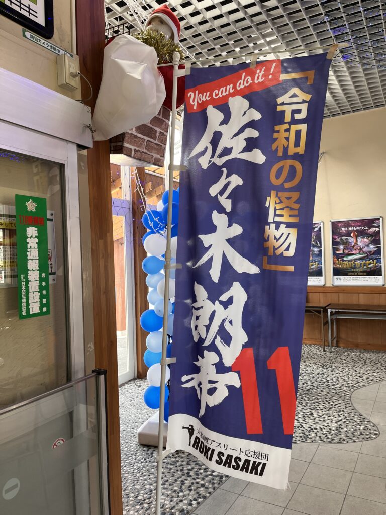 12月19日三陸鉄道盛駅、佐々木朗希さんの旗。